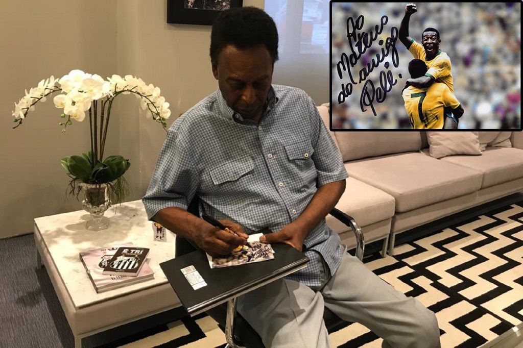 Podpis Pelego to osobna historia. Odkąd zacząłem zbierać autografy, podpis Pelego był moim, szczególnym, kolekcjonerskim marzeniem. Podczas tych kilku lat wysłałem mnóstwo listów, na różne adresy, z licznymi zapytaniami o możliwość dotarcia do Brazylijczyka. Pewnego razu, niespodziewanie, na moim FB pojawiła się wiadomość od jednego z współpracowników Pele. Napisał, że moja korespondencja trafiła w jego ręce i postara się pomóc. Nauczony poprzednimi doświadczeniami, wyraziłem zadowolenie i podziękowałem za uprzejmość, jednak nie bardzo wierzyłem w powodzenie tej akcji. Poprosiłem go, żeby uwiecznił na zdjęciu moment, w którym Pele będzie podpisywał przesłane przeze mnie zdjęcie. Chciałem mieć potwierdzenie, że autograf, który ewentualnie otrzymam będzie oryginalny. Ku mojemu zdziwieniu, wkrótce przesłano mi zdjęcie, na którym… Pele składa podpis, dodając – specjalnie dla mnie – dedykację. Parę tygodni później otrzymałem przesyłkę z Brazylii. Spełnienie marzeń.