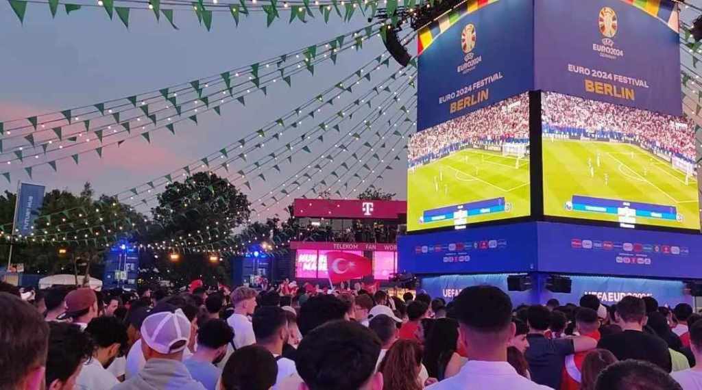 W Berlinie problemów z multiligą nie było. Choć stricte na strefie nie ma miejsca, gdzie transmitowane byłyby dwa mecze naraz, to jednocześnie takie miejsce nie było potrzebne, gdyż wszystkie spotkania można było oglądać w sumie na pięciu ekranach. Pierwsze cztery umieszczone były naokoło znajdującego się w centrum filaru. To tam kibice mogli oglądać pojedynki Ukrainy z Belgią oraz Czechów z Turcją. Pozostałe mecze (Rumunia-Słowacja i Gruzja-Portugalia) transmitowane były na piątym ekranie, znajdującym się bardziej na uboczu przed niewielkim placem, na którym można było położyć się na leżaku czy rozłożyć materac. Było to o tyle fajne, że po ustawieniu się w odpowiednim miejscu istniała możliwość oglądania obu spotkań jednocześnie, z całkiem przyjemną widocznością na znajdujący się dalej ekran.